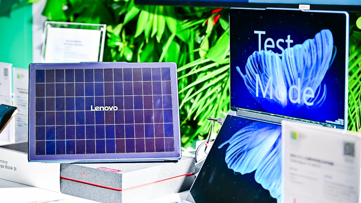 Yoga Solar PC是联想推出的一款太阳能电脑,其能量转换效率超24%,户外直射30分钟延长1小时续航。每台Solar PC生命周期能额外带来25kg的碳减排量。同时,这台电脑很轻薄仅有15毫米厚,仅1.2千克重。为常需户外办公的用户提供了“永不断电”的绿色解决方案。