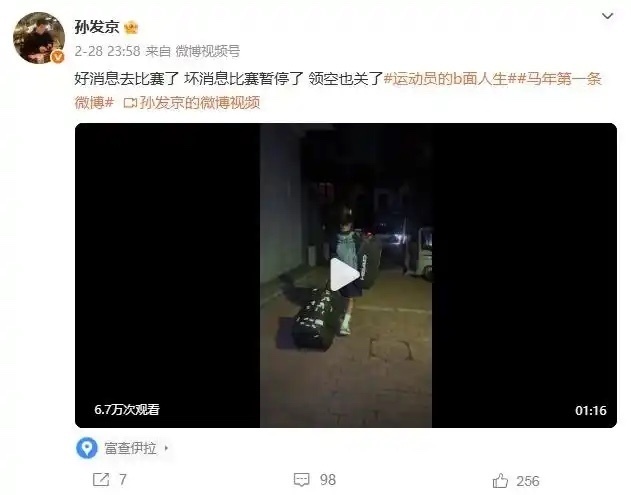 孙发京发文道:“好消息去比赛了,坏消息比赛暂停了,领空也关了。愿世界和平,滞留同胞都安全。”周意则自嘲:“打这么多年球,也是当上战地记者了。”