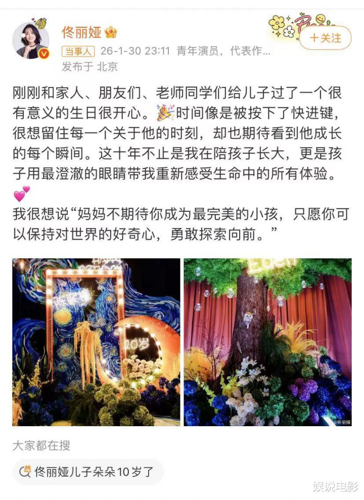 1月30日是陈奕橦的生日,佟丽娅发博为儿子庆生,估计陈思诚可能有事,这些事都全权交给了妈妈办理。其实佟丽娅是陈思诚公司的艺人,估计也是陈思诚授权公司员工为儿子举行隆重的十岁生日派对。
