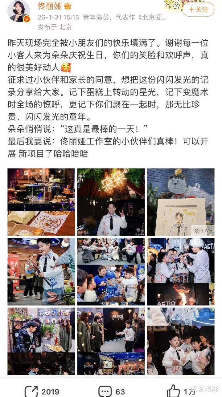 佟丽娅征求孩子们的父母,可以发布这些小伙伴为儿子朵朵庆生的图片,朵朵不仅喜欢艺术,可能更喜欢魔术,还有各种竞技比赛,邀请很多小伙伴为他庆生,朵朵告诉妈妈,这真是最棒的一天。佟丽娅表示,她工作室小伙伴们真棒,可以开展新项目了。