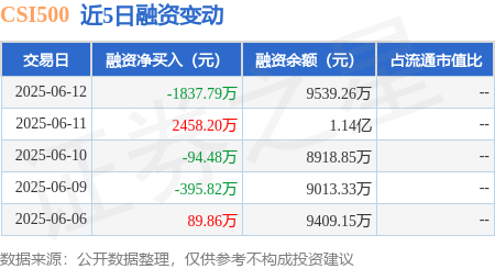本站消息,6月12日今日云策,CSI500(159922)融资买入284.79万元,融资偿还2122.57万元,融资净卖出1837.79万元,融资余额9539.26万元,近20个交易日中有11个交易日出现融资净买入。