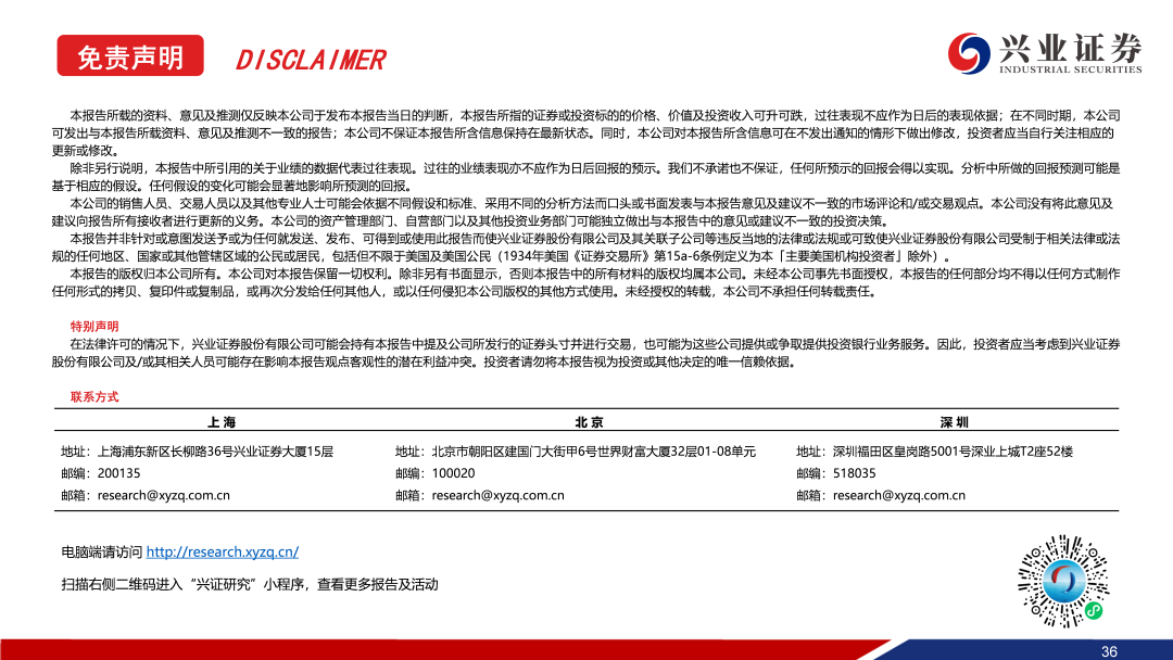 ]article_adlist-->(3)免责声明市场有风险,投资需谨慎。本平台所载内容和意见仅供参考,不构成对任何人的投资建议(专家、嘉宾或其他兴业证券股份有限公司以外的人士的演讲、交流或会议纪要等仅代表其本人或其所在机构之观点),亦不构成任何保证,接收人不应单纯依靠本资料的信息而取代自身的独立判断,应自主做出投资决策并自行承担风险。根据《证券期货投资者适当性管理办法》,本平台内容仅供兴业证券股份有限公司客户中的专业投资者使用,若您并非专业投资者,为保证服务质量、控制投资风险,请勿订阅或转载本平台中的信息,本资料难以设置访问权限,若给您造成不便,还请见谅。在任何情况下,作者及作者所在团队、兴业证券股份有限公司不对任何人因使用本平台中的任何内容所引致的任何损失负任何责任。